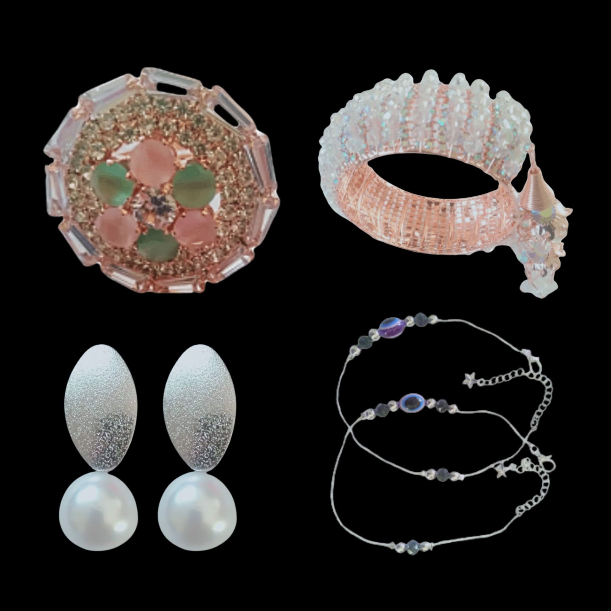 1 Diamond Finger Ring + 1 Crystal Latkan Bracelet + 3 Ring + 1 Payaal